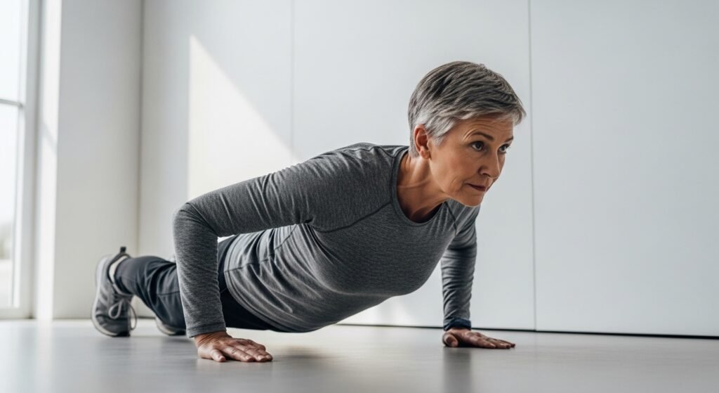 People require upper body strength for two essential tasks which include door opening and self-lifting after a fall. You should stand three feet away from the wall and place your hands at shoulder height before executing a push-up. The exercise creates a controlled environment which enables users to build their chest and arm strength.