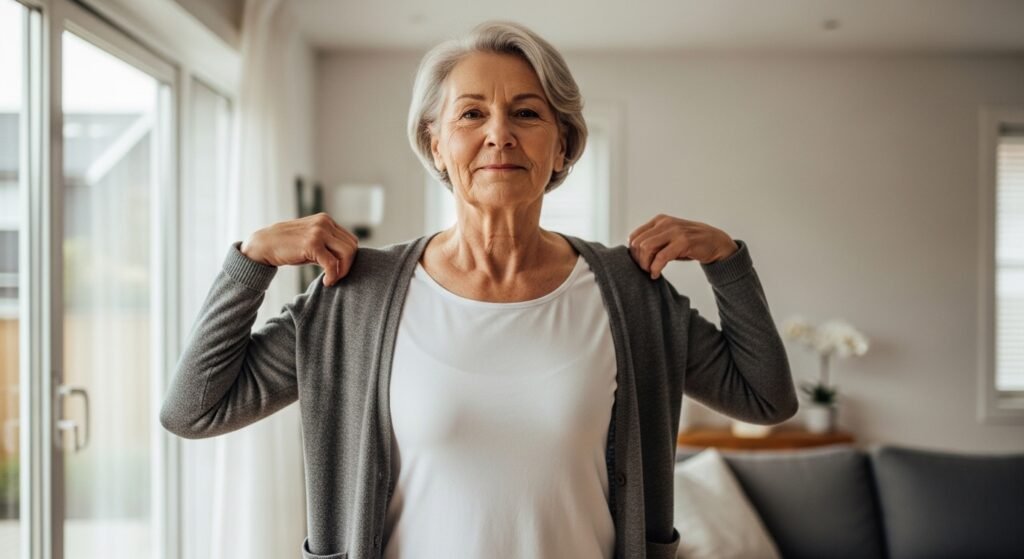 Older adults develop a forward hunching posture which becomes common during their senior years. You should imagine squeezing a pencil between your shoulder blades while you maintain a seated or standing position. The exercise improves your posture and lung capacity by opening up your chest which makes breathing and movement easier.