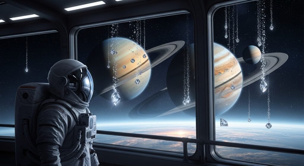 The Earth receives its water from rain but gas giants like Saturn and Jupiter use their intense atmospheric conditions to transform carbon into diamond formations. The process starts with lightning which converts methane into soot that turns into graphite before it becomes diamonds. The “diamond raindrops” transform into a liquid sea when they reach the planet’s extreme temperatures.