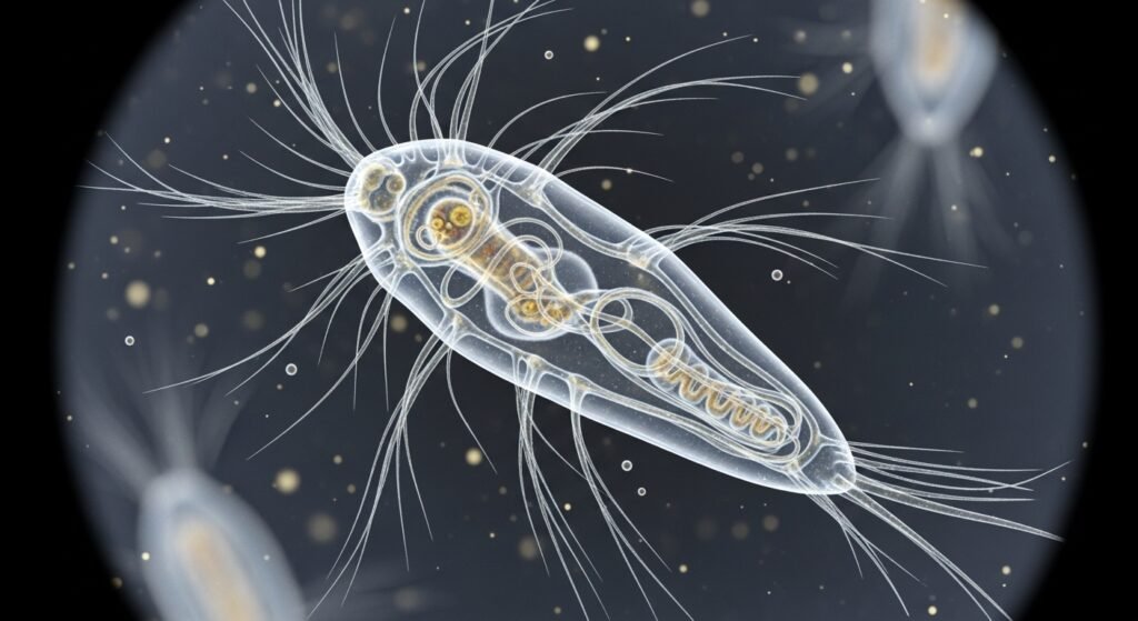 The animal measures only a few millimeters in length and shows a translucent body structure. Specialized appendages allow movement through dense sediment. Microscopic examination revealed features adapted for filtering organic material. These traits align with survival in saline and nutrient limited environments.
