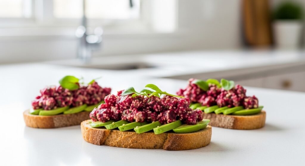 Avocado toast is still popular because it is easy to prepare, and the nutrition can be customized. One beet poke layer provides a color, texture and quantifiable nutrient diversity without complicated procedures. The strategy is appropriate in home kitchens and food service environments. The blend is based on the well-known ingredients that are used purposefully. The outcome facilitates aesthetics, serving size, and uniform flavor delivery amongst breakfast or light meal meals.