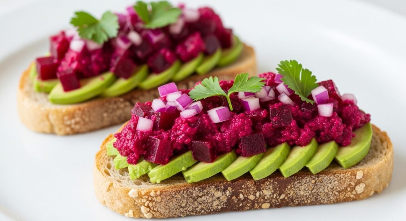 Toast offers a hard crust that has structural support. Avocado gives it creaminess and beet poke gives it firmness. The contrast of texture enhances the clarity of bites and decreases fatigue of palate. The slower eating rates on balanced textures are in line with mindful actions of eating portions reported in nutrition studies.