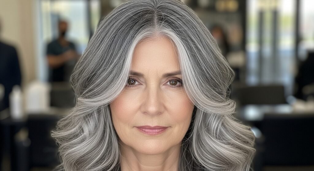 Many people now choose to blend natural grey tones instead of covering them completely. Skilled colorists mix soft highlights and lowlights, creating dimension that celebrates natural change while keeping hair vibrant and polished and elegant.
