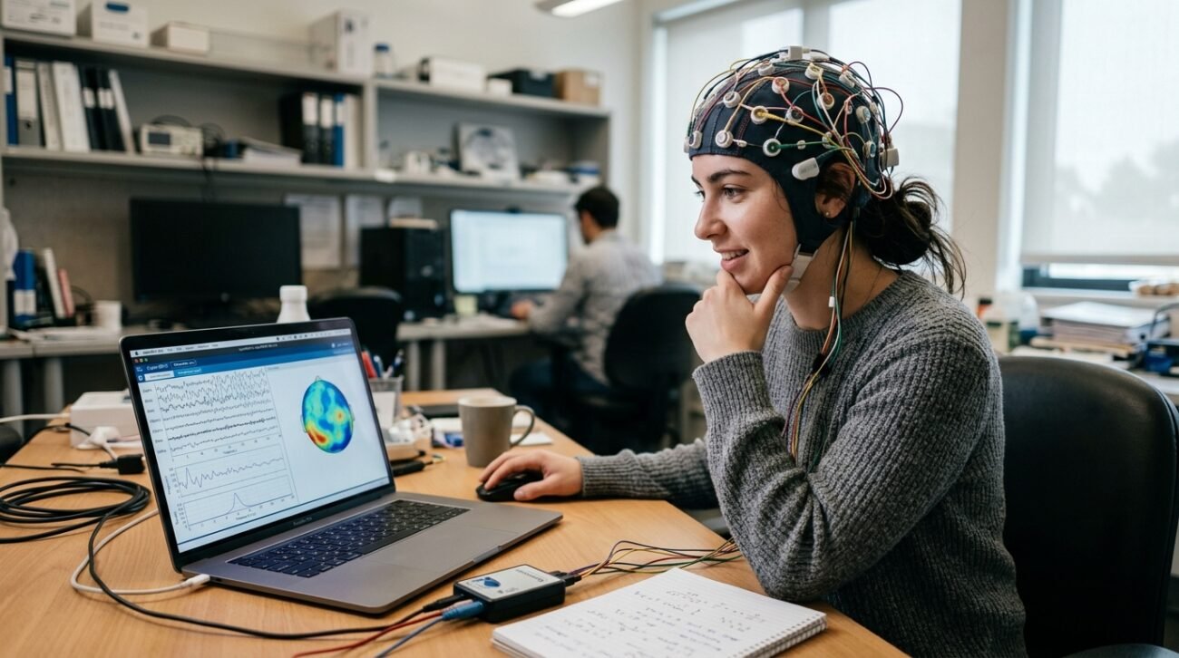 Devices using EEG sensors can capture electrical activity from the brain. During the test, participants wore headsets that recorded signals, showing that technology can identify general mental states like focus, relaxation, and stress.