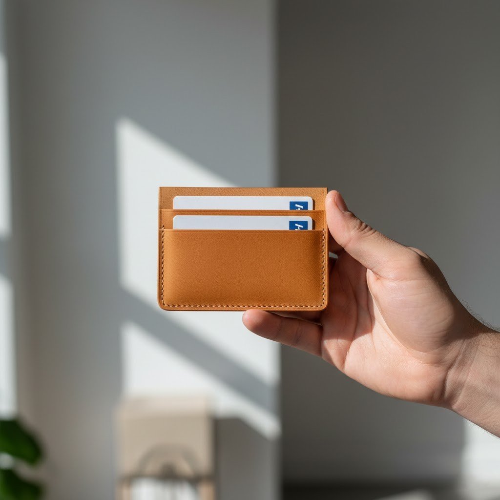A card holder carries essential cards in a thin sleeve format. Some models include RFID blocking layers for data protection. Capacity ranges from three to eight cards. This design works for users who pay digitally and require only identification and one payment card during daily errands.