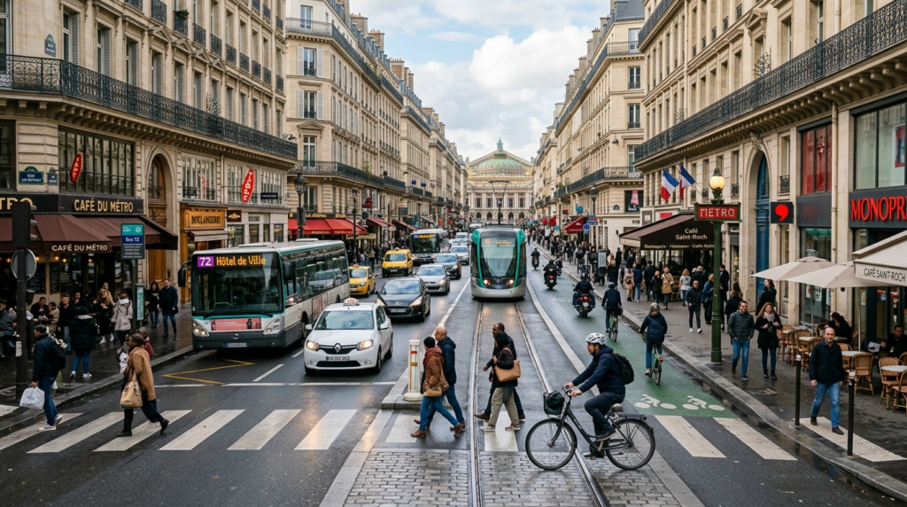Based on Eurostat and OECD transport indicators, France has approximately 600 cars per 1,000 people, with balanced use between cars and public transport.