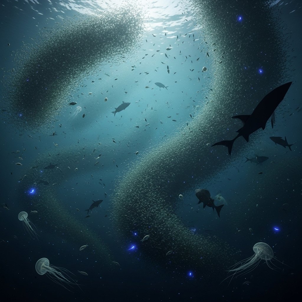 The marine life relies on the light to feed and move. Long periods of low light affect the distribution of depth and growth cycles of planktons. Instead of dramatic collapse of the population, researchers observed the observed behavioral alteration, which implies gradual response of the ecosystem.