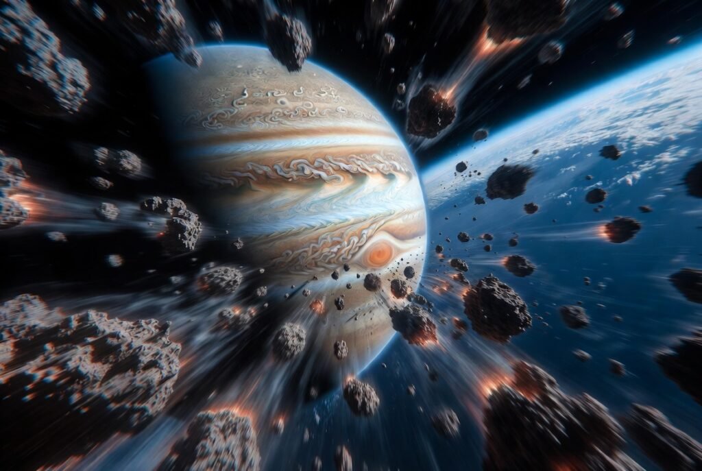 Earth being protected by a big planet, Jupiter, its ominous strength attracts or diverts hazardous asteroids and comets that would otherwise impact on its surface. Had it not been for interference provided by the ‘Big Brother’ planet, Earth would have faced extinction events too frequently for any life to evolve.