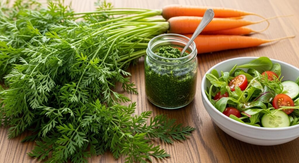 Carrot tops might even seem to be decorative greens, although they might as well be used to make a sauce or be added to salads. Certain cooks feel that they could add fresh flavor, like the herbs, when used wisely and washed thoroughly.