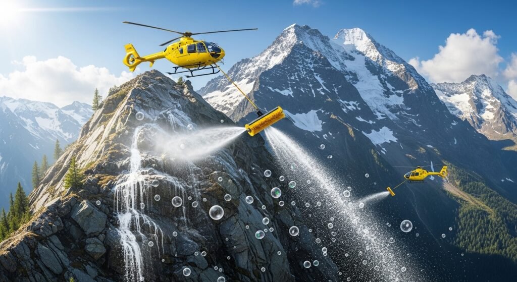 One April Fools’ Day, tourism officials in Switzerland shared a story claiming helicopters were used to wash mountain peaks. Images supported the idea, but the campaign was later explained as a creative joke promoting the beauty of the landscape.
