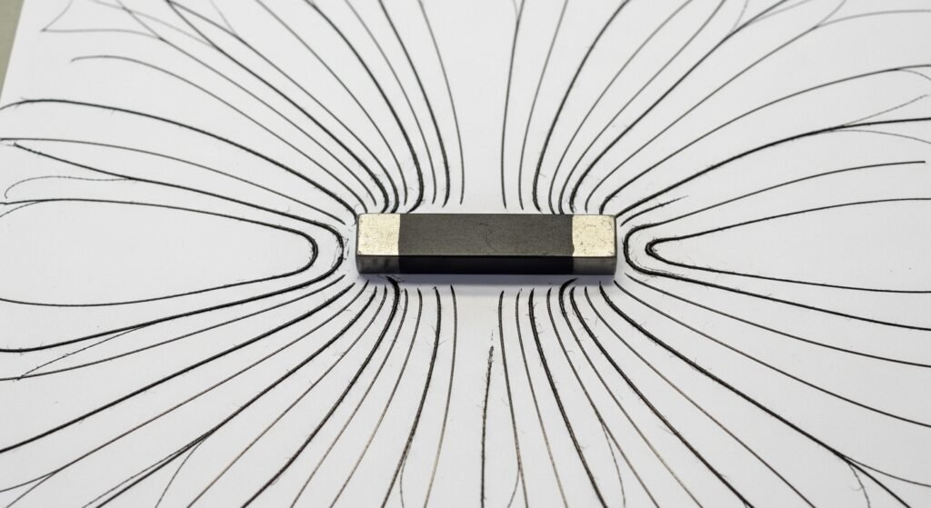 Sprinkling iron filings around a magnet reveals the invisible magnetic field. The filings align themselves in curved patterns. These lines represent the direction of magnetic forces. The experiment visually explains how magnetism influences nearby materials.