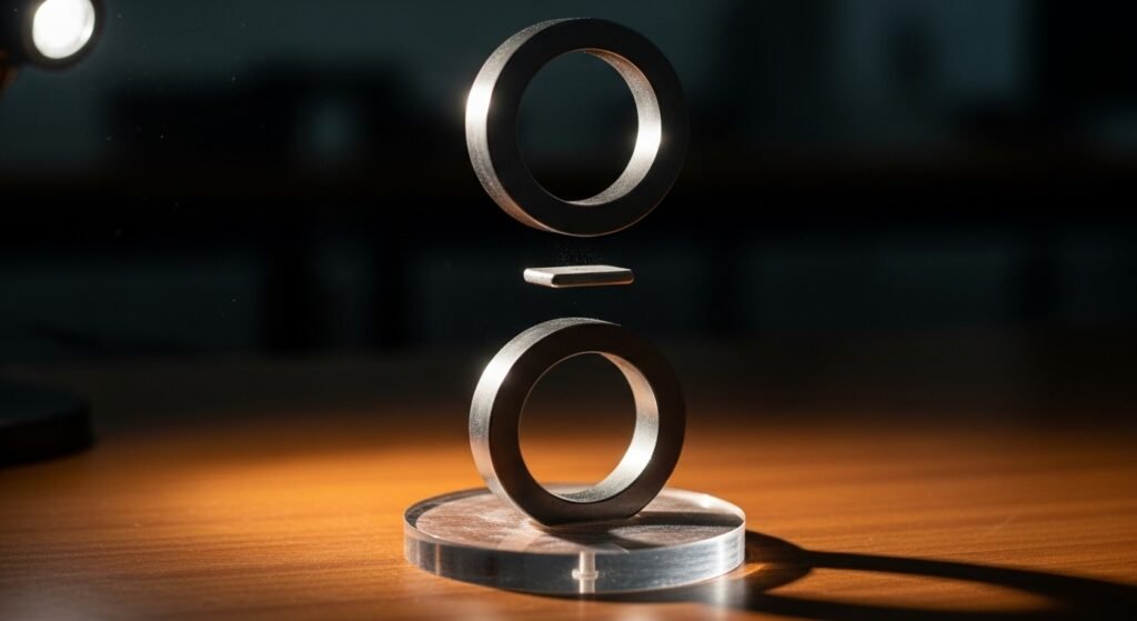 Magnets can sometimes lift lightweight objects without contact. When arranged correctly, opposing magnetic forces balance gravity. The object floats between them. This demonstration highlights how magnetic fields can create stable equilibrium in controlled conditions.