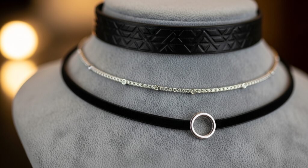 The chokers seem to be making a comeback into jewelry collections. After being attached to nearly any dress, they appear a little upscale. Minimal designs may be substituting bolder versions from the past with simple black bands, delicate chains, and minimal designs.