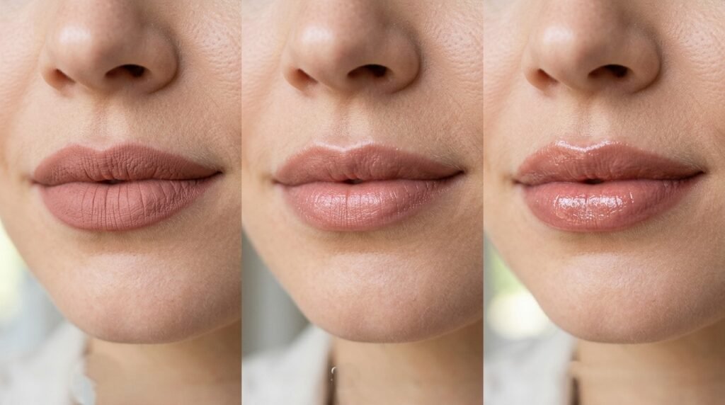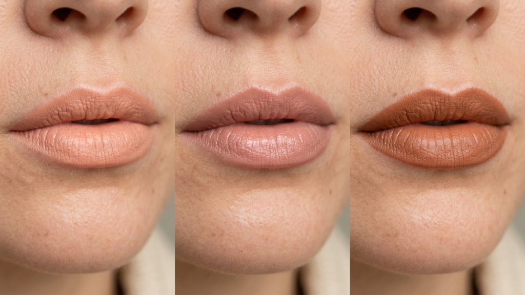 Lipstick finish affects the final look. Matte nudes offer a bold, smooth appearance, satin finishes provide soft shine, and creamy textures give comfort and moisture. Choosing the right finish enhances overall lip aesthetics.