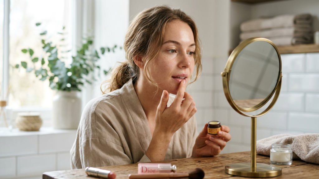 Well-hydrated lips improve lipstick application and appearance. Regular moisturizing and gentle exfoliation help remove dryness, allowing nude lipstick to glide smoothly and maintain an even, soft, and natural finish throughout the day.