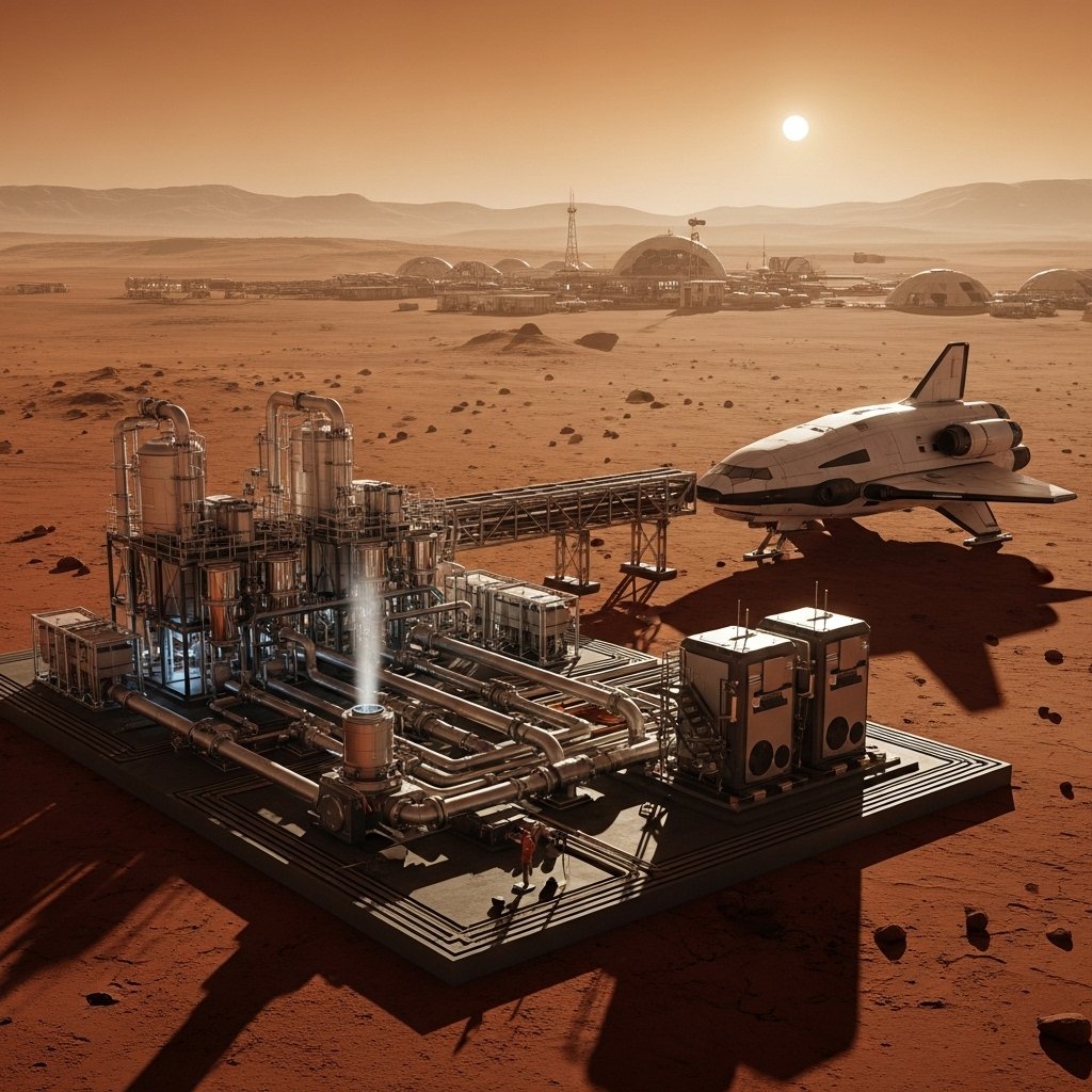The long-term existence of Mars relies on the local fuel production. SpaceX will use the water ice on Mars and carbon dioxide in the atmosphere to create methane and oxygen. This is a process that sustains the flight back and the surface movement. Local fuel eliminates reliance on Earth based supply chains.