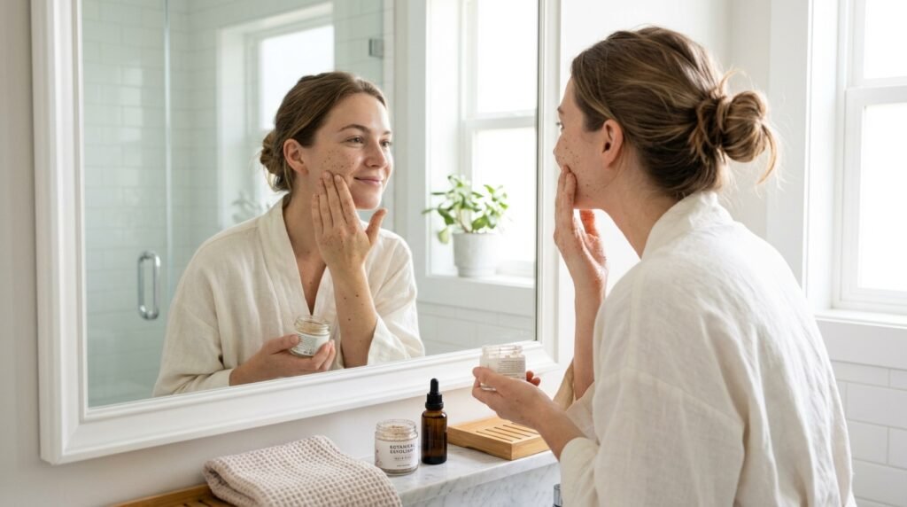 Exfoliate your skin gently once or twice a week to remove dead cells. This process improves skin texture, unclogs pores, and enhances your natural glow without causing irritation when done correctly.