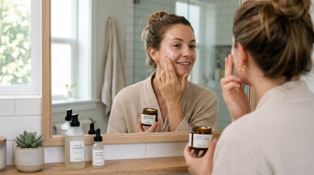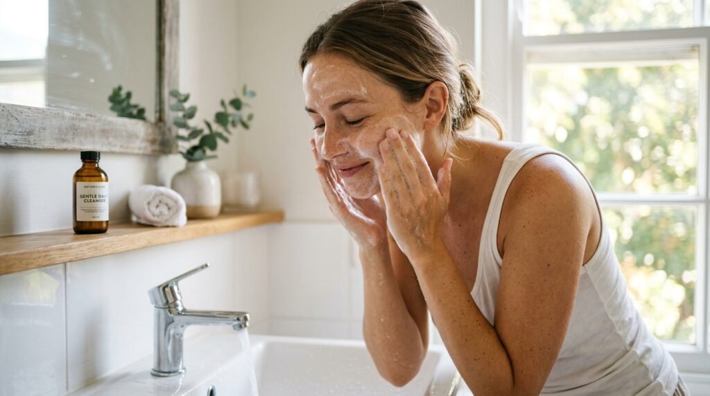 Use a mild cleanser twice daily to remove dirt, oil, and impurities without stripping natural moisture. Over-cleansing can irritate the skin, so focus on gentle formulas that keep your skin balanced and refreshed.
