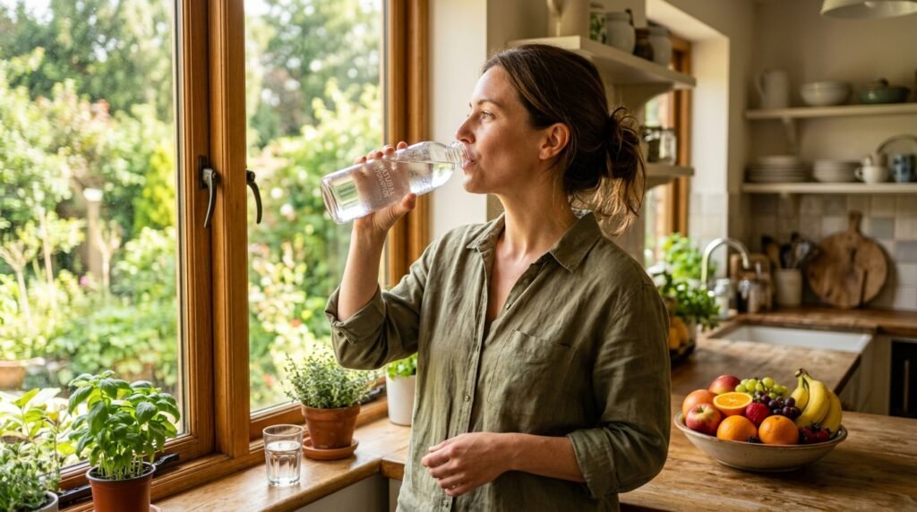 Drink enough water throughout the day to keep your skin hydrated from within. Proper hydration helps maintain elasticity, flush out toxins, and gives your skin a natural, healthy glow that reflects overall wellness.