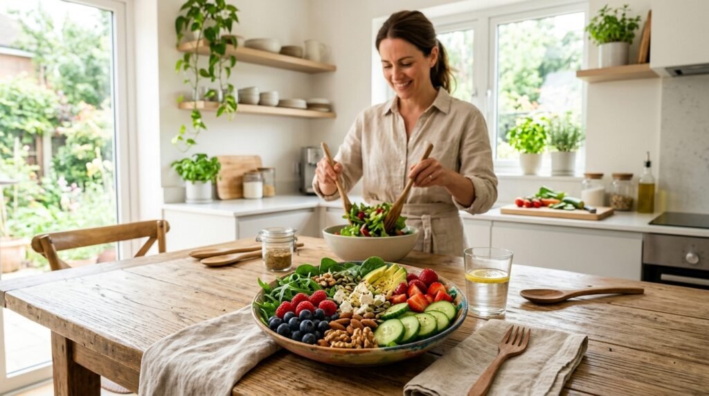Include fresh fruits, vegetables, and nutrient-rich foods in your diet. Vitamins and antioxidants nourish your skin from within, helping it stay clear, firm, and glowing naturally without relying on external treatments.