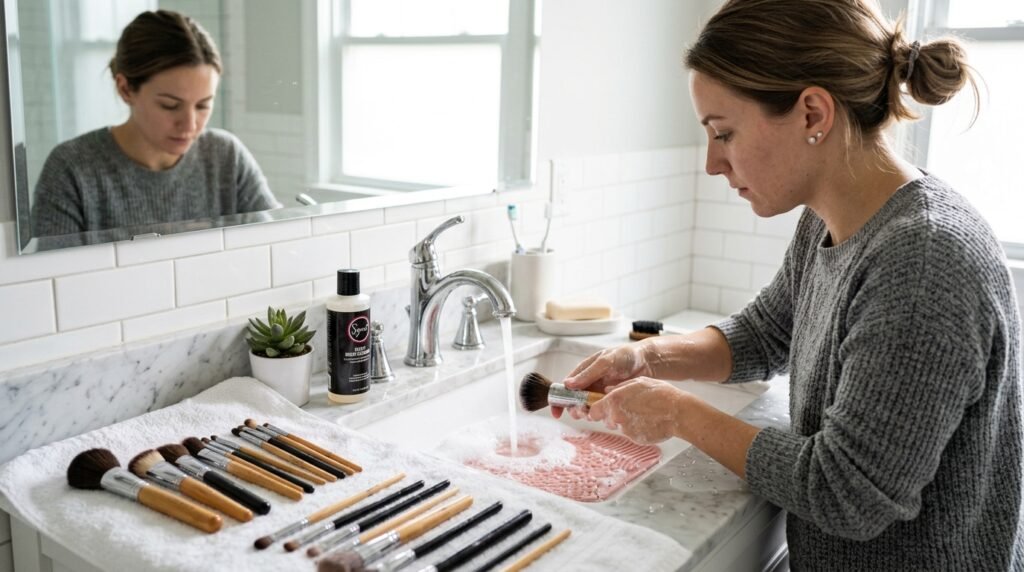 Regularly clean makeup brushes, towels, and pillowcases to avoid buildup of dirt and bacteria. Clean tools help maintain skin hygiene and reduce the chances of irritation or unwanted skin issues.