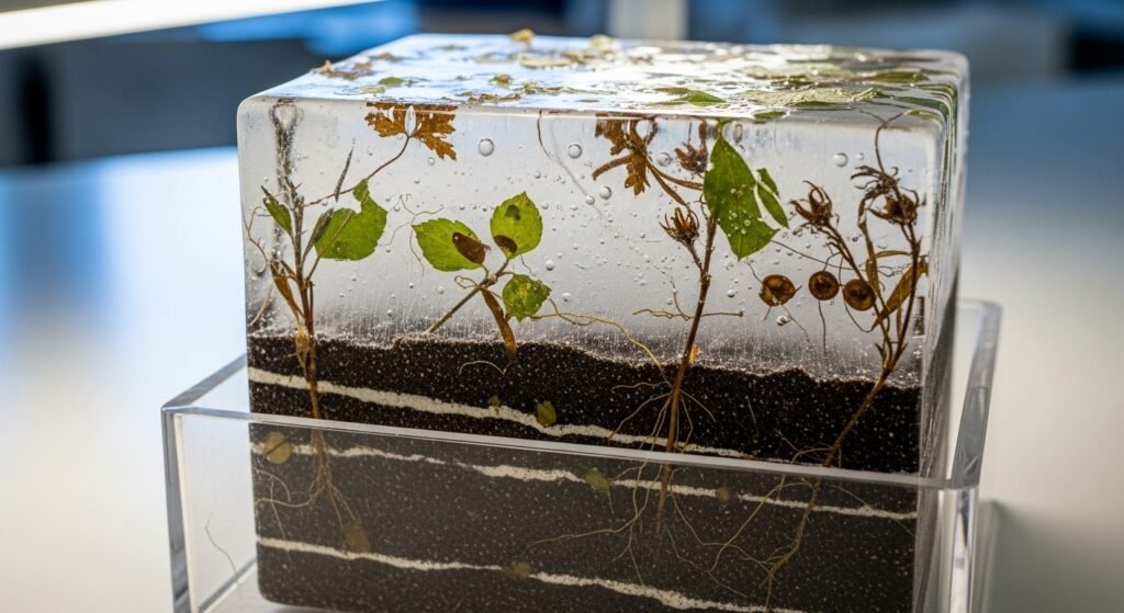 Microscopic traces of plant matter appeared inside the sediment. These remains included twigs and leaf fragments preserved by cold conditions. Plant growth requires sunlight and seasonal cycles. Presence of organic material signaled ice absence during earlier warm phases rather than permanent coverage.