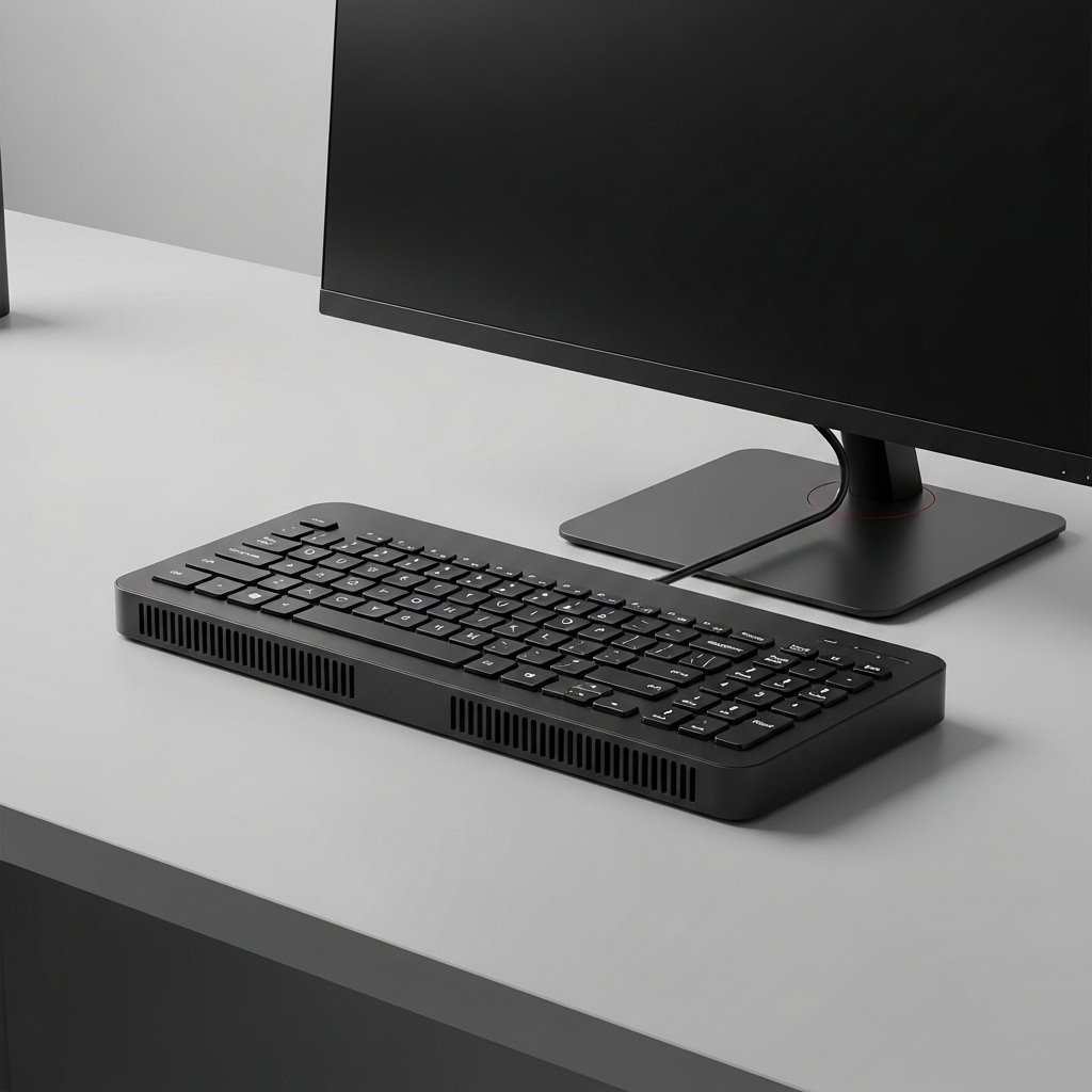 The computer integrates processing components inside a full size keyboard chassis. A single cable links the unit to an external display. Desk clutter reduces because towers and docks disappear. Weight feels higher than standard keyboards, which affects portability during frequent repositioning.