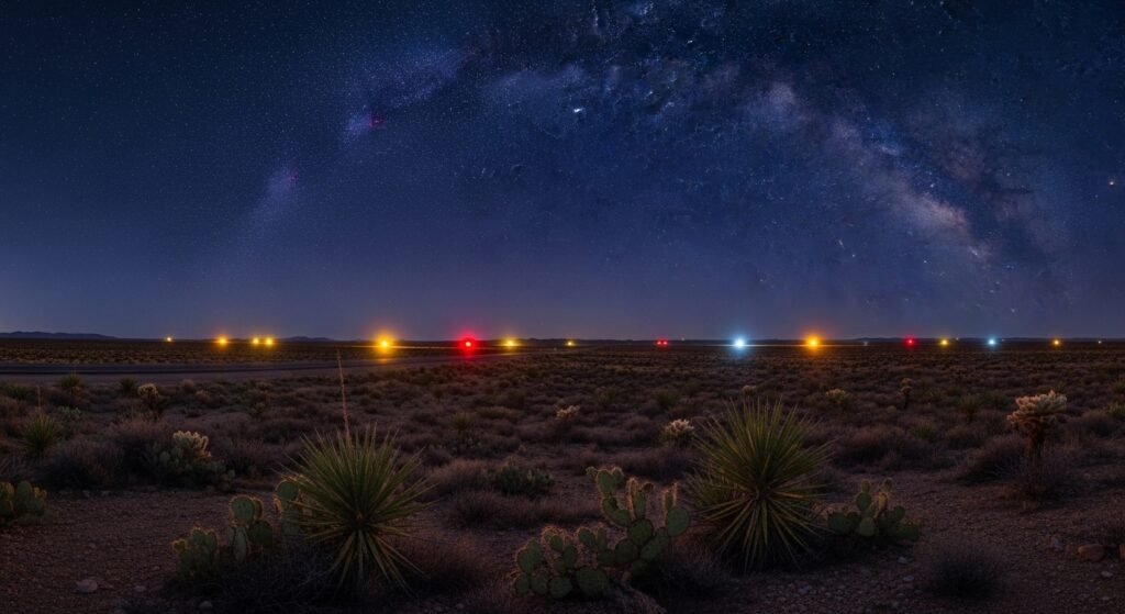 In the desert near Marfa, unexplained lights appear and disappear unpredictably. Observers have reported them for over a century, yet no single explanation fully accounts for the phenomenon’s consistency.