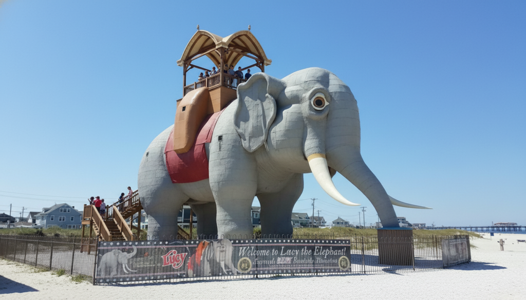 This enormous elephant-shaped building in New Jersey was constructed in the late nineteenth century. Originally created as a real estate attraction, Lucy the Elephant now serves as a museum and historic landmark overlooking the nearby coastline.