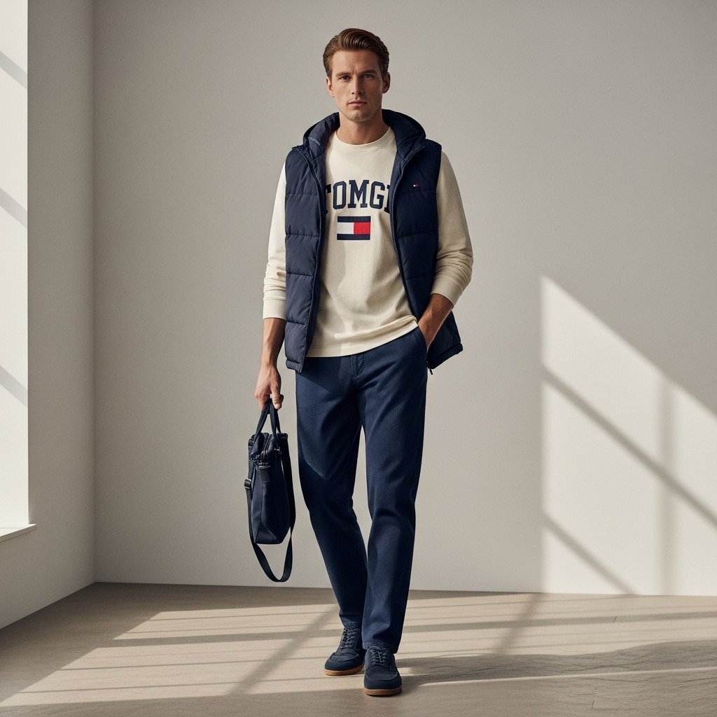 The Tommy Hilfiger incorporated the style of prep with flag inspired bold graphics in the 1990s. Casual jeans, brand sweatshirts, and letter jackets were attractive to the young markets. Contemporary collections are narrow fitting and restrict the size of logos, but still contain familiar red, white, and blue.