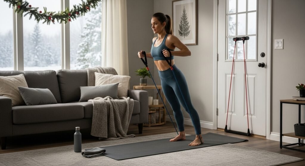 The tension of the resistance bands can be increased or reduced in both upper and lower body exercises. Large muscle groups are active with the use of rows, presses, and leg extensions. Research on strength indicates that there are no significant differences in muscle activity when the resistance bands and free weights are used. Portable equipment helps in maintaining regular indoor strength training devoid of space and storage issues.