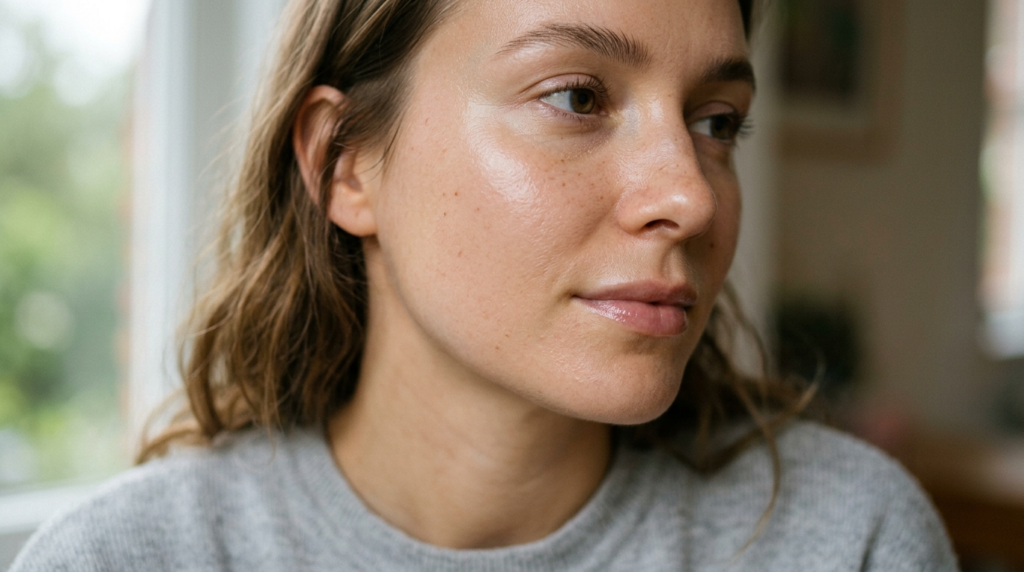 Natural light made a visible glow appear, which became increasingly prominent throughout the day. The skin showed improved evenness, which resulted in heightened reflective properties compared to the original appearance.