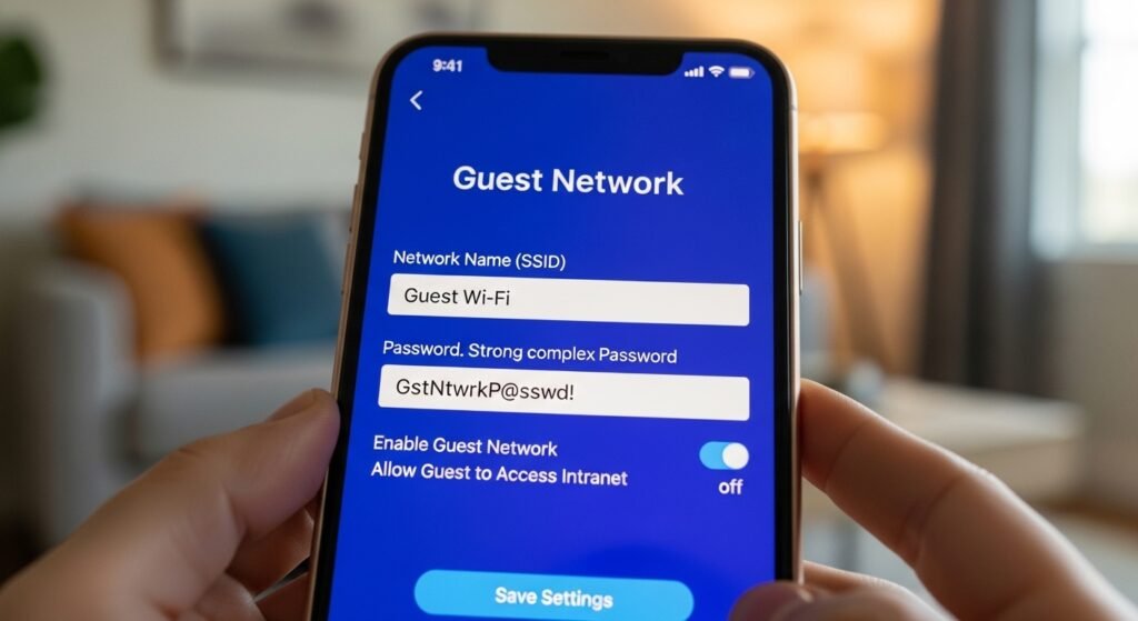 Set up a “Guest Network” with its own password for your visitors who stay at your home. This method enables your friends to access your internet connection while your friends remain barred from entering your primary network and using your main password.