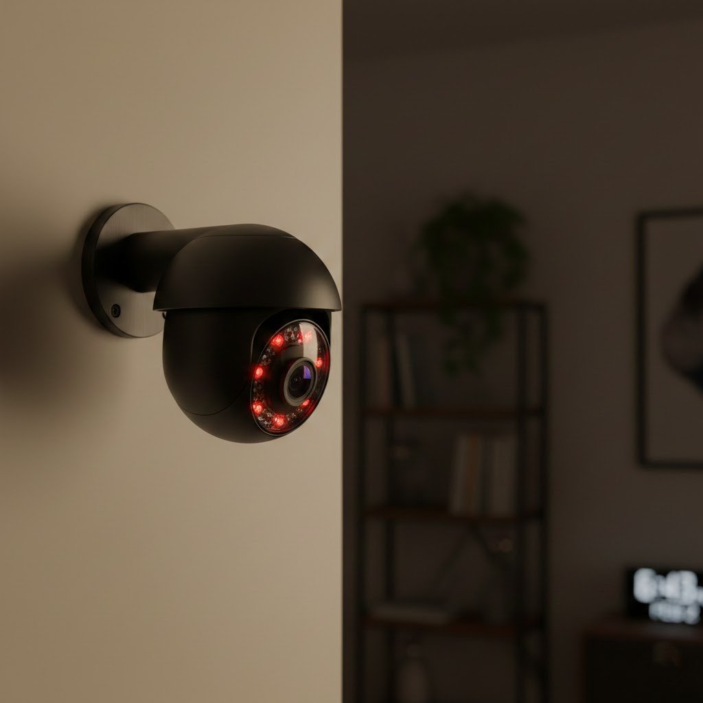 Some smart cameras possess a physical privacy shutter which produces a small “click” noise when it operates because of its infrared filter. Your camera makes clicking sounds in the dark, which indicates someone is viewing the feed or an automated system has access to it.
