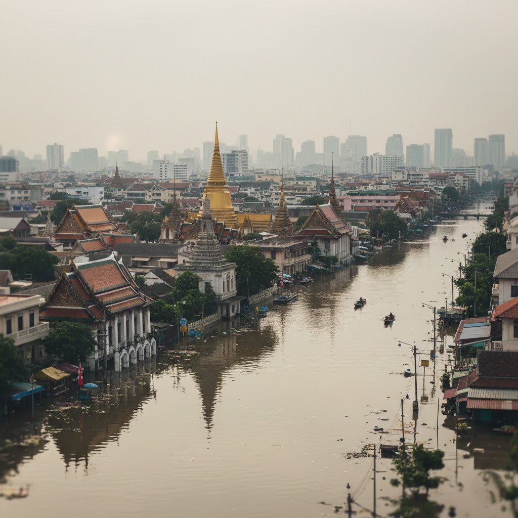 It is swampy in Bangkok, sinking while the gulf rises around it. There are only a few parts five feet up. If they don’t change the way they manage water and selling land, temples, and busy areas might be flooded by 2050.