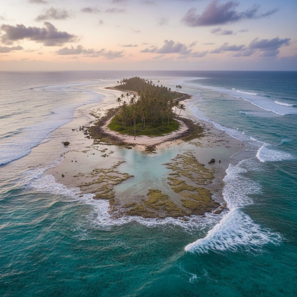 Very small Pacific island nation right in the center between Hawaii and Australia. It is very much low above the sea just like Maldives. Whenever high seasonal tides engulf the tantamount of said island with seawater through porous ground, waves do not break. Now, most of the scientists fear Tuvalu could dry down in decades.