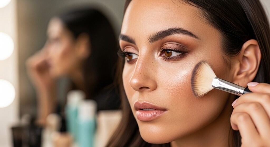 Apply a touch of blush or bronzer to add warmth and color. Focus on the cheeks and blend upward for a natural glow that enhances your facial structure.