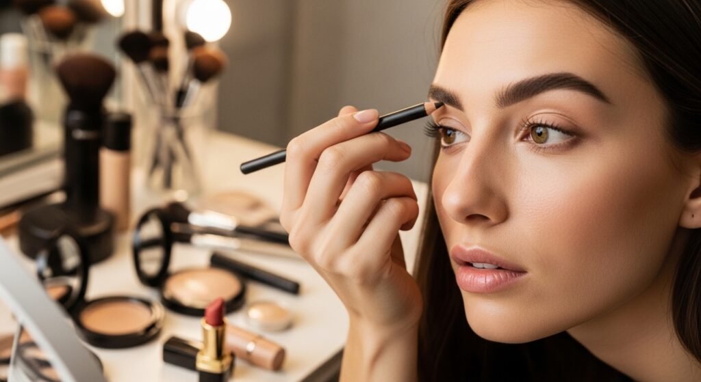 Fill in your eyebrows using a pencil or powder. Follow your natural shape to define your face subtly, enhancing your overall look without making the brows appear overly dramatic.