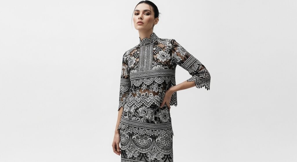 Wearing lace in a single color from top to bottom is another growing trend. Monochrome lace outfits appear clean and coordinated, allowing the intricate patterns of the fabric to become the main visual focus.