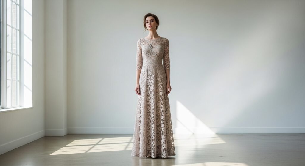 Soft neutral shades like beige, cream, or soft gray are making lace dresses feel modern again. These colors highlight the fabric’s intricate patterns while keeping the look calm, sophisticated, and appropriate for various occasions.