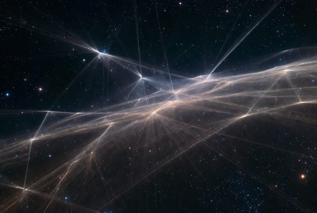 In this endeavor, a cosmic web has been mapped by astronomers in the large-scale structure in the universe. Galaxies are connected by long filaments of dark matter. This structure superficially resembles a human brain network of neurons. This is not viewed as mere coincidence by some theorists but rather as a signal that the universe is organized according to information processing.