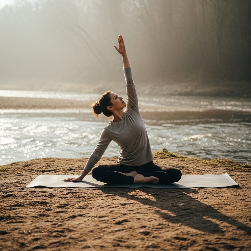 Riverbanks with compact soil provide stable footing when dry. Practitioners should avoid loose gravel and check for rising water levels. Gentle flowing water creates a steady background sound. Ground inspection reduces risk of slips during standing sequences.