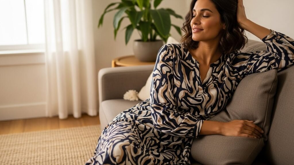Print placement influences balance. Vertical motifs guide the eye upward and downward smoothly. Studies on garment perception show aligned patterns enhance structure. Women over 60 benefit from prints matching natural body lines rather than fighting them.