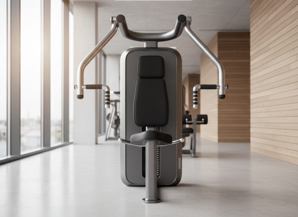 Chest press machines guide movement through a fixed path. Such structure reduces stability demands and supports consistent loading. Research supports machine use for volume accumulation during later workout phases. Seat and handle adjustments align joints and reduce unnecessary shoulder stress.