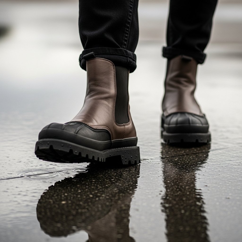 The majority of exposure to surface water goes to footwear. Sealed seam leather shoes do not allow water to seep into the sneaker as compared to canvas sneaker. Rubber soles that have tread patterns enhance grip on wet pavements. Balance Ankle length boots provide protection and mobility in day to day commuting.