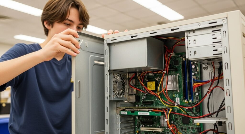 Old computers may be used as learning equipment for individuals desiring technology. It could be safer to open one and have a look inside its components than to play around with a new device. It may be an activity-based approach to learning about hardware.