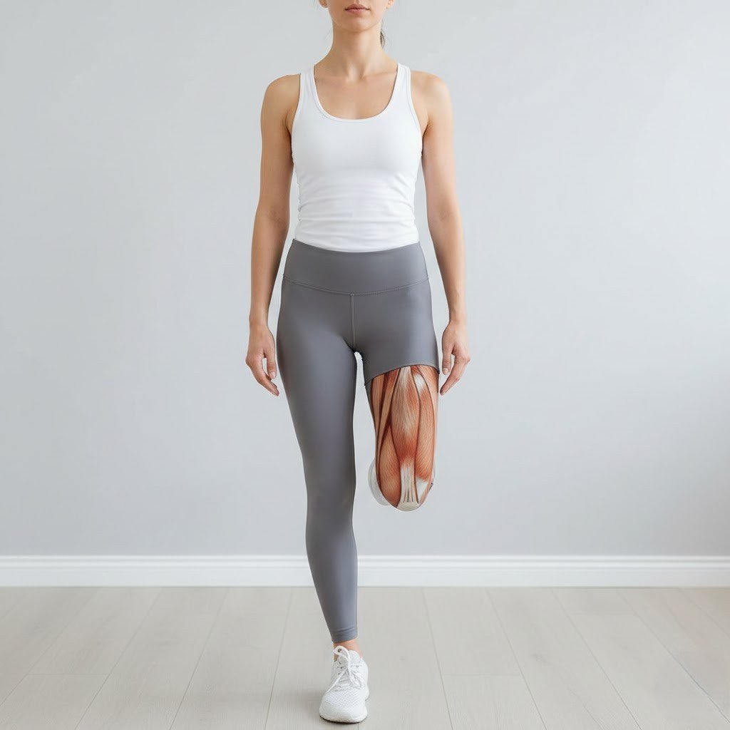 Calf raises strengthen lower leg muscles assisting knee support. Strong calves help manage force during walking and standing. Biomechanics research connects calf conditioning with improved lower limb stability. Rising and lowering under control increases muscle activation and balance control.