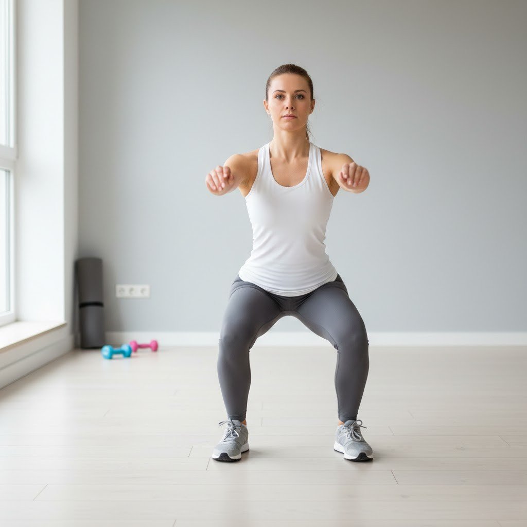 Mini squats strengthen knees through limited range movement. Shallow depth reduces joint pressure while supporting muscle development. Exercise science supports partial squats during early strength stages. Even weight distribution and upright posture support joint safety.