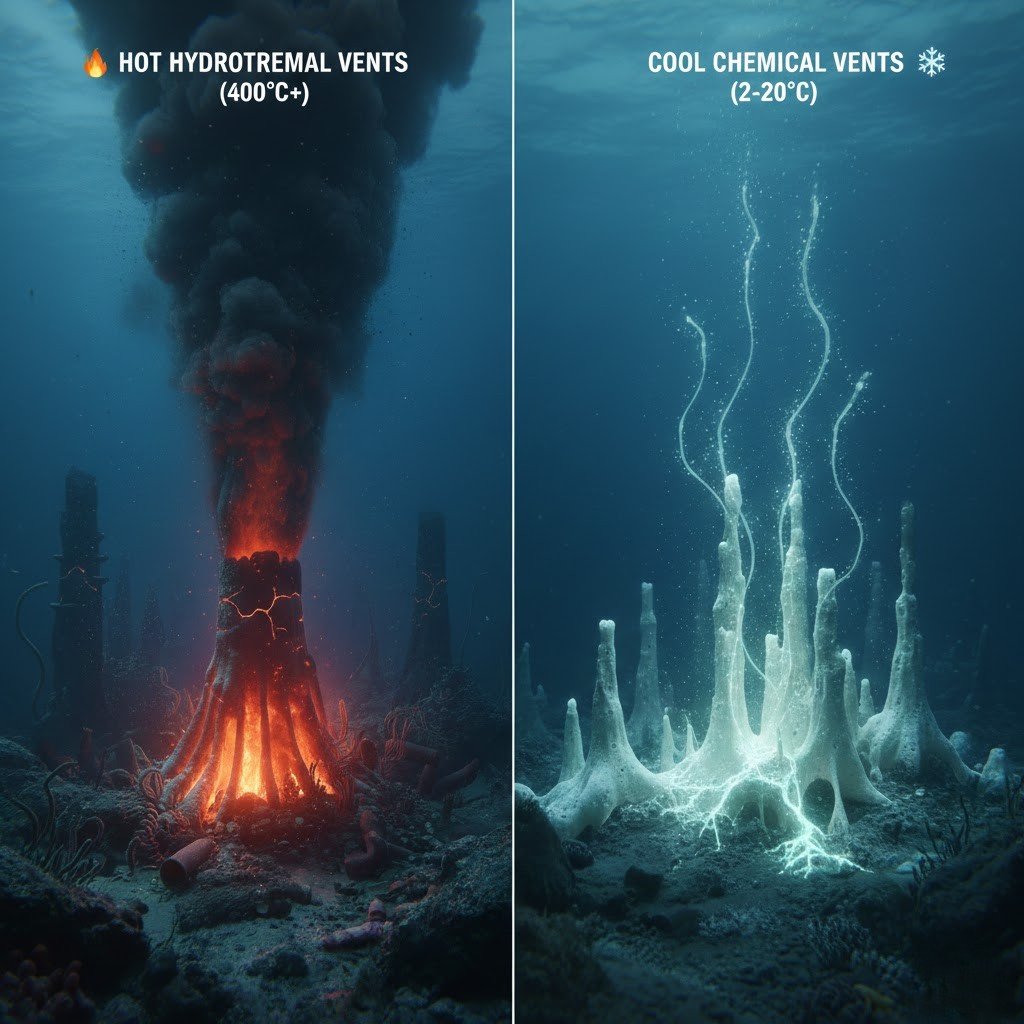 Unlike hydrothermal vents, this structure lacks extreme heat spikes. Temperature readings remain moderate and consistent. Vent systems depend on volcanic heat. The newly identified site depends on chemical reactions within rock layers. This distinction marks a separate category of deep ocean environment.