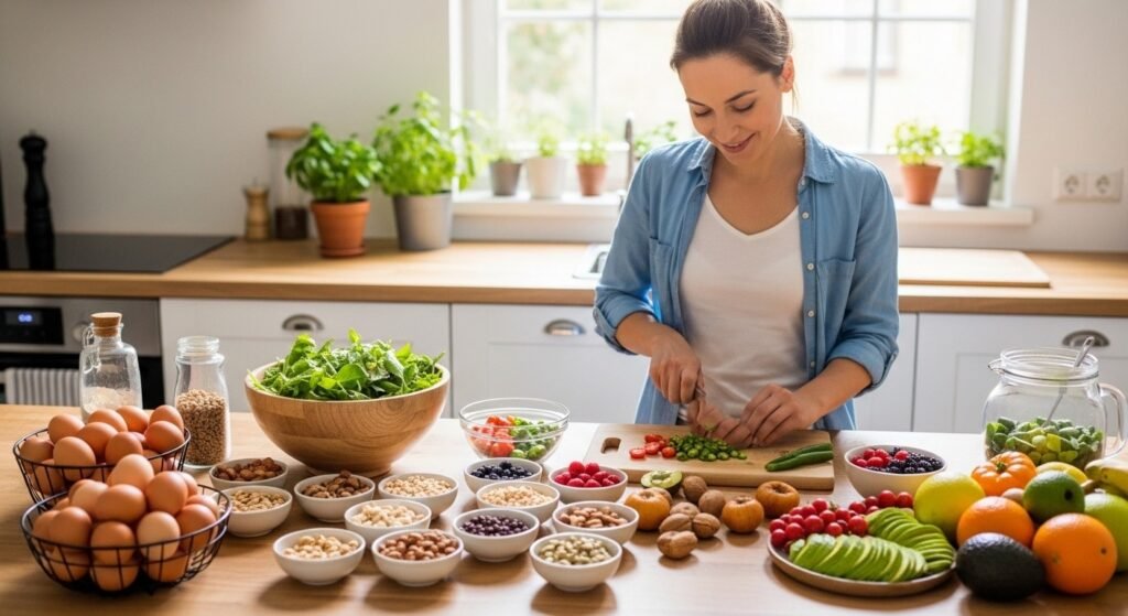 Hair reflects what the body receives through daily meals. Include foods rich in protein, leafy vegetables, nuts, seeds, and fruits. A varied diet supports strength and shine while helping strands look dense and resilient overall.